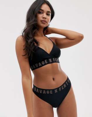 Savage X Fenty Cotton Logo Bralette In Black Asos
