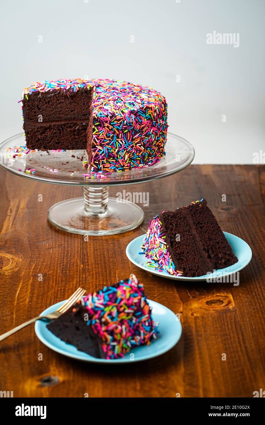 Chocolate Cake With Colorful Sprinkles Stock Photo Alamy